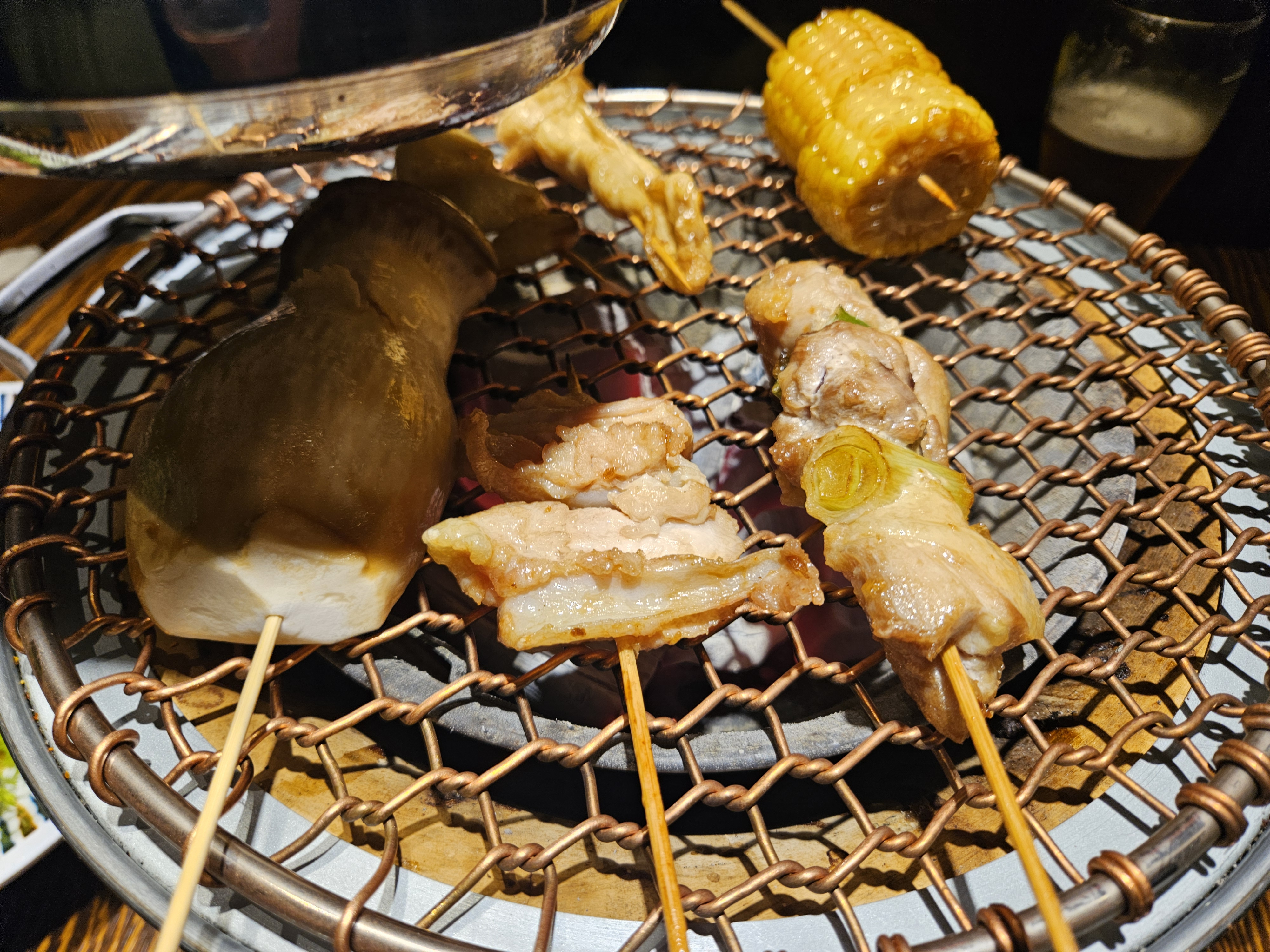 이렇게 화로에 올려서 직접 하나둘 구워먹으면 되요.