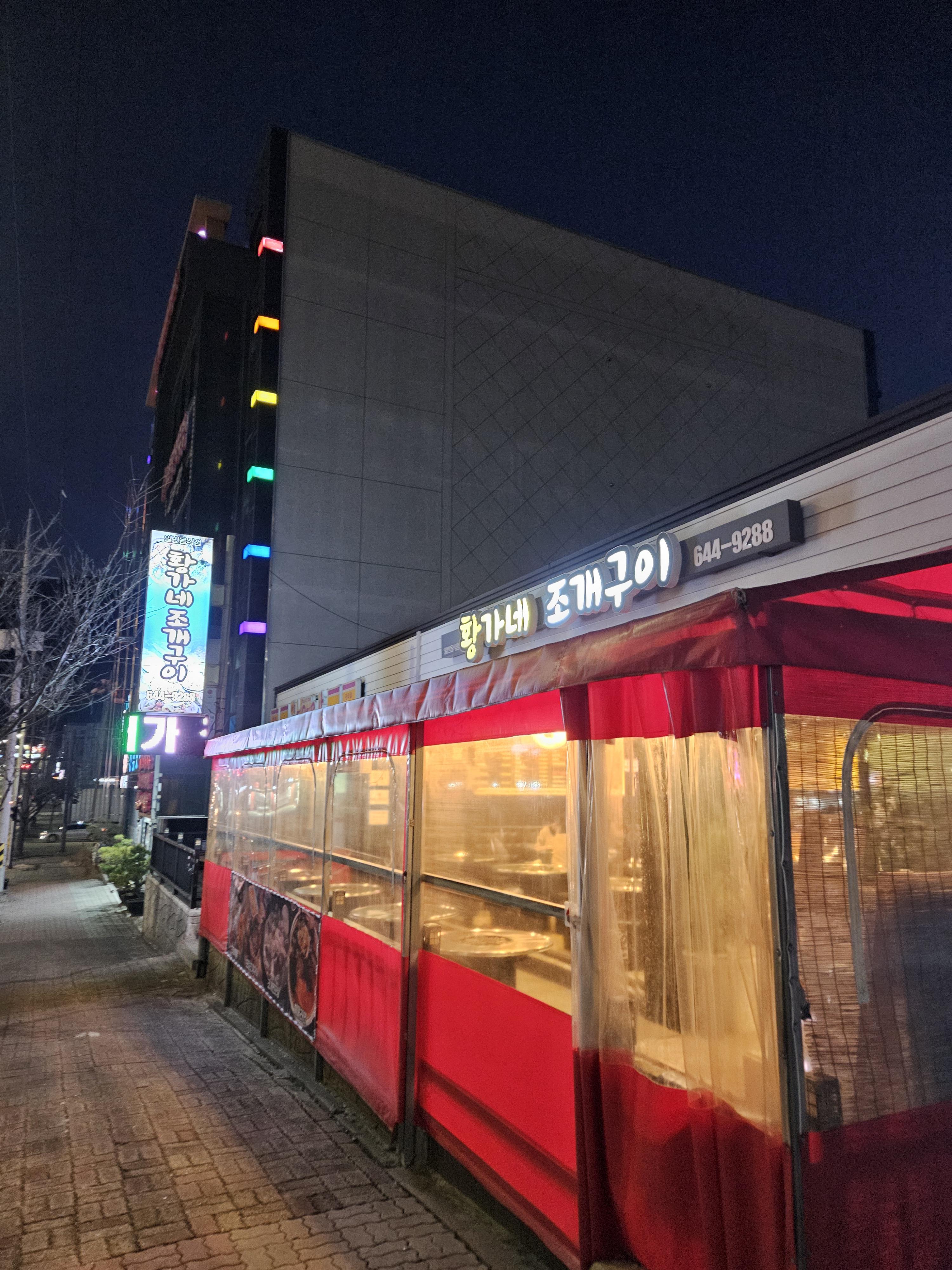 숙소 근처를 찾다가 바로 앞에 황가네 조개구이라는 곳이 있어서 방문했습니다.