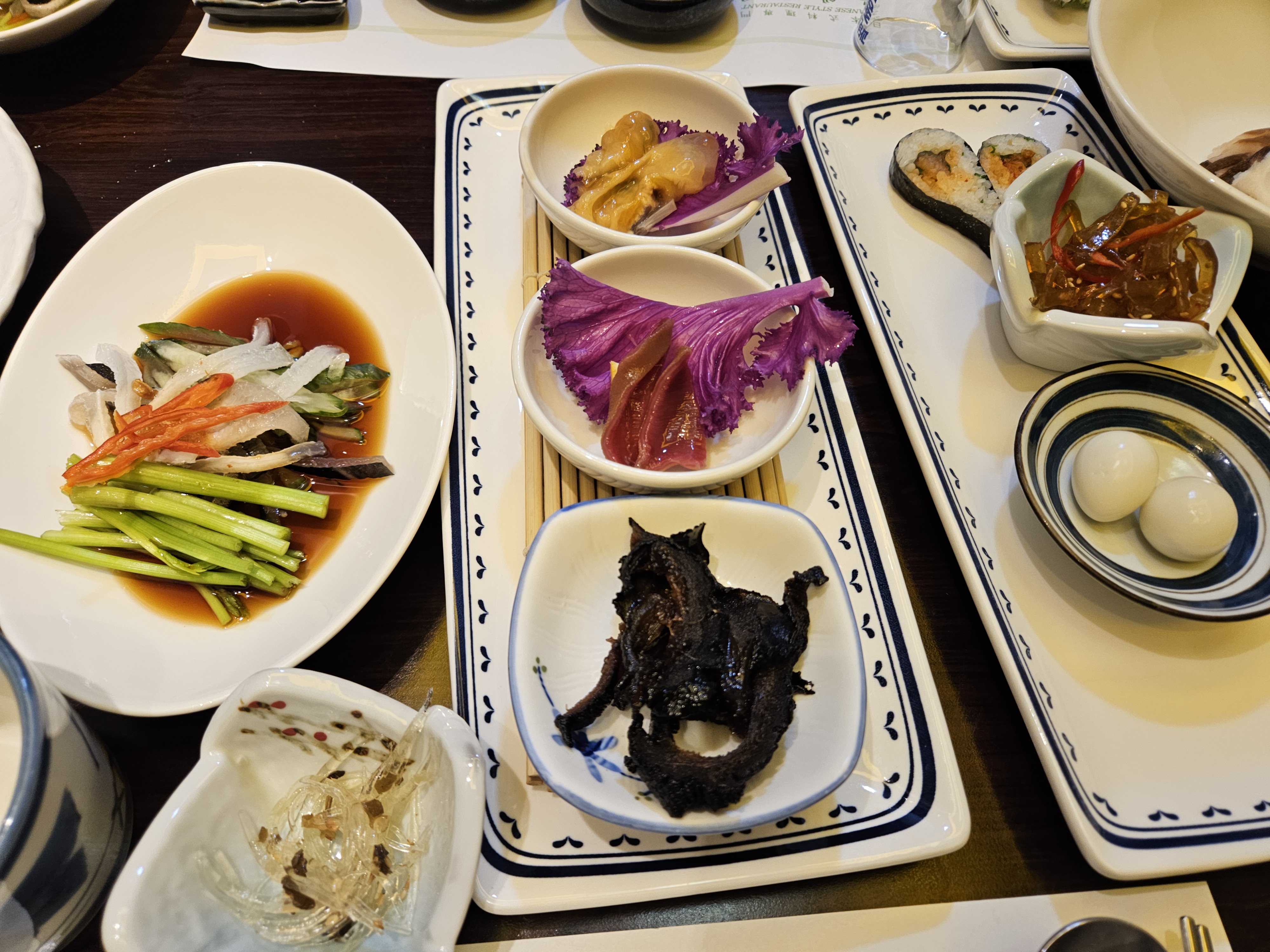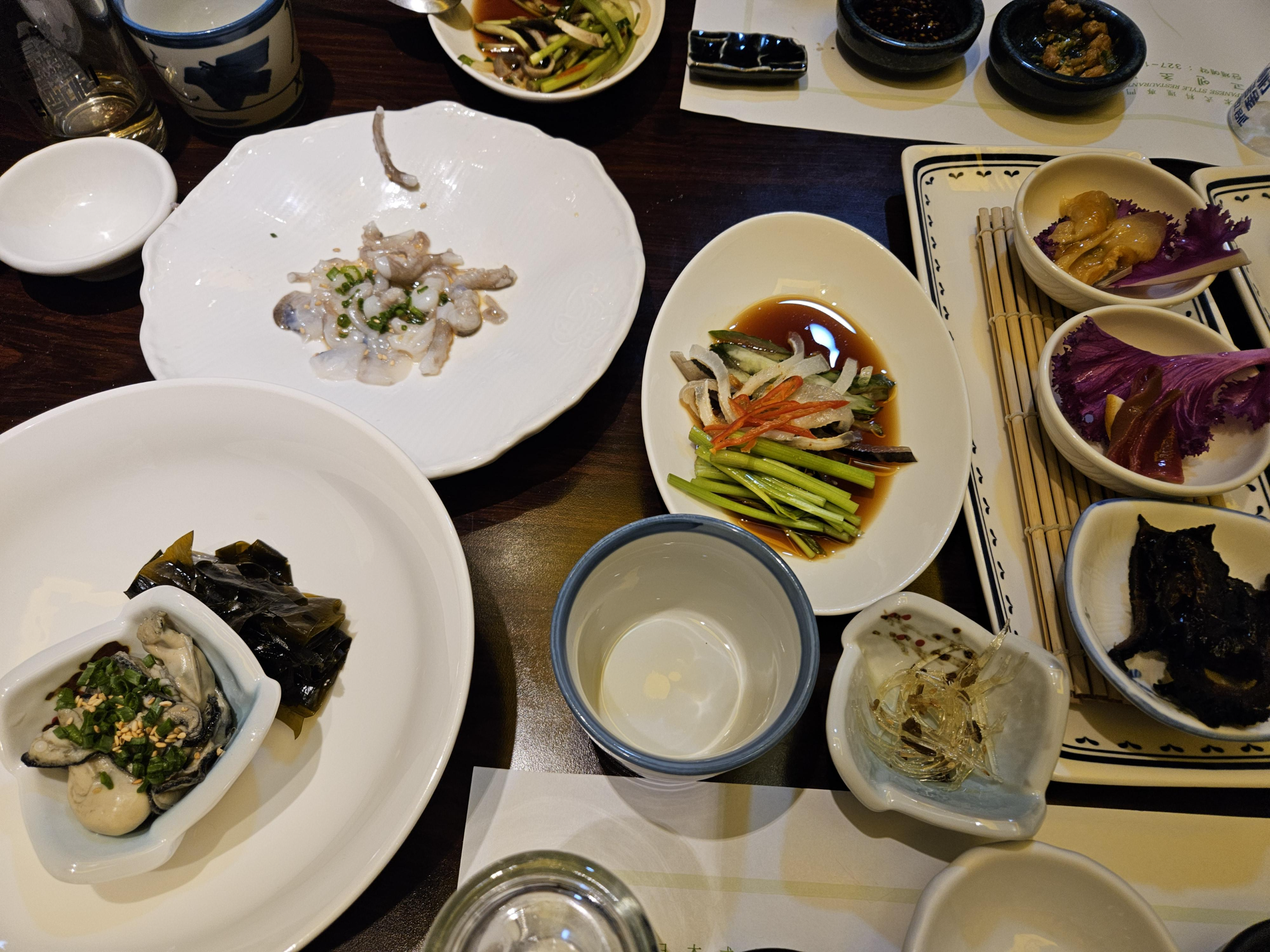 코스를 시켰는데 기본으로 깔리는 음식들이 푸짐합니다.