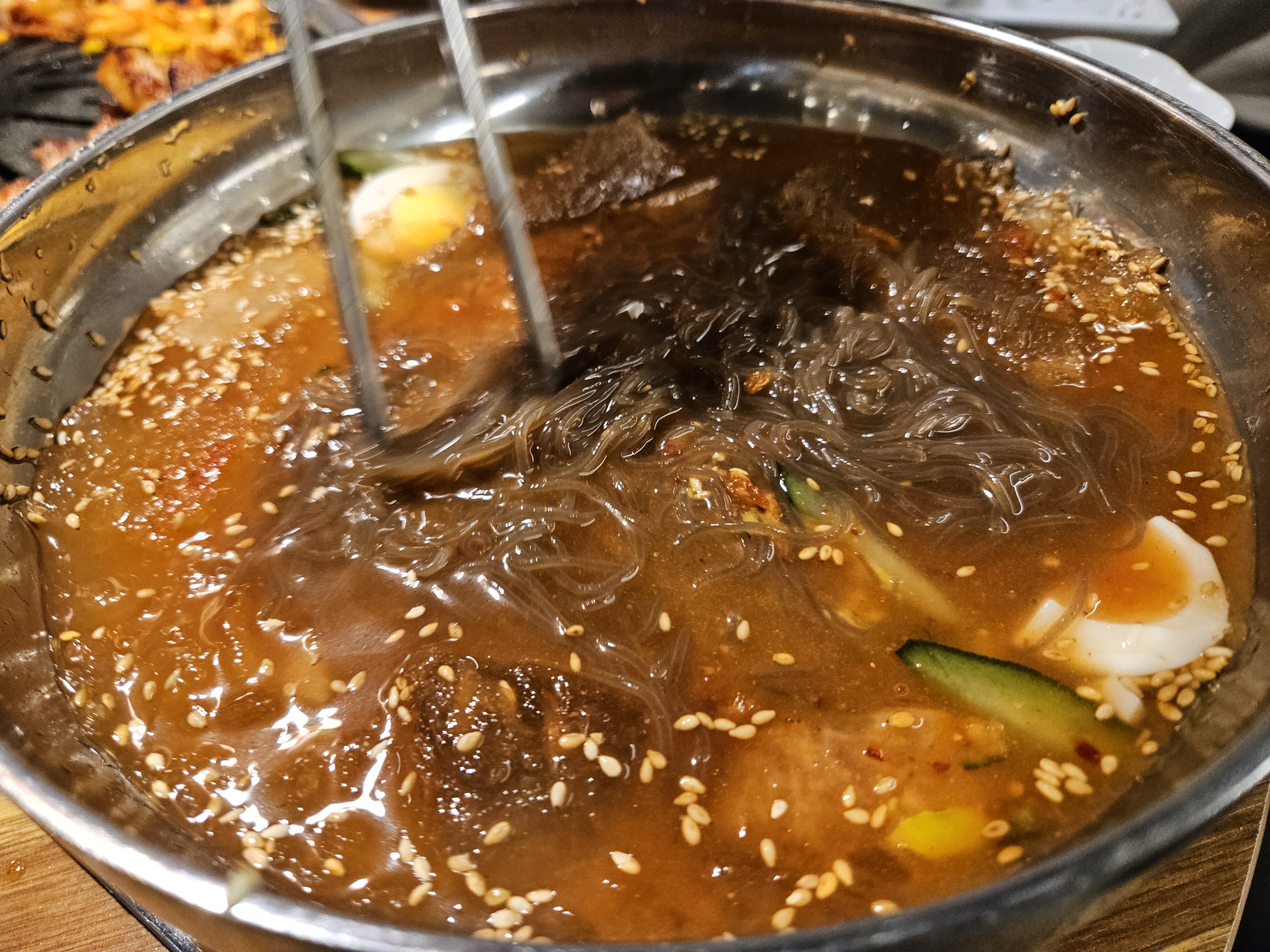 이렇게 소주 3병에, 고기 5인분에, 냉면에 된장까지 먹었지만 4만원이 안나오더군요.