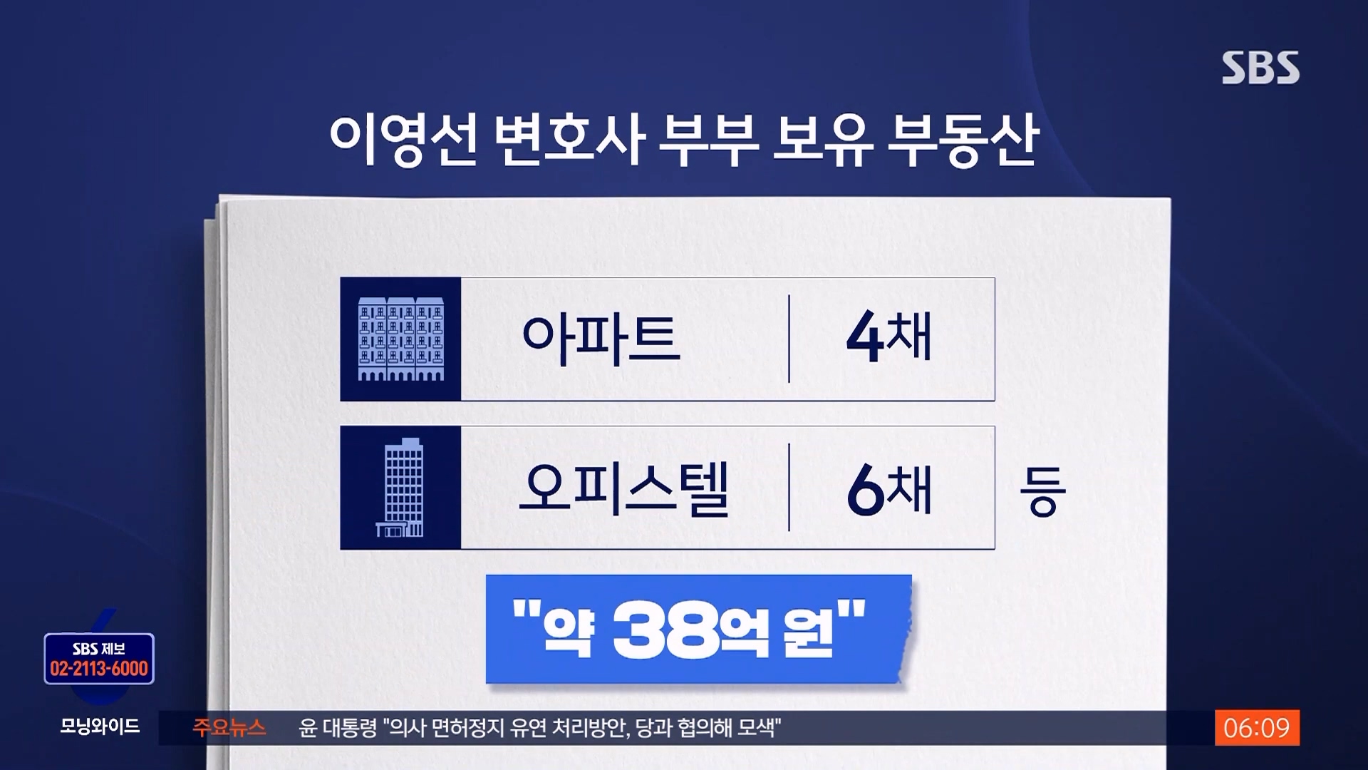 이영선 변호사는 아파트 4채와 다수의 오피스텔을 소유하며 여러 부동산을 소유하는