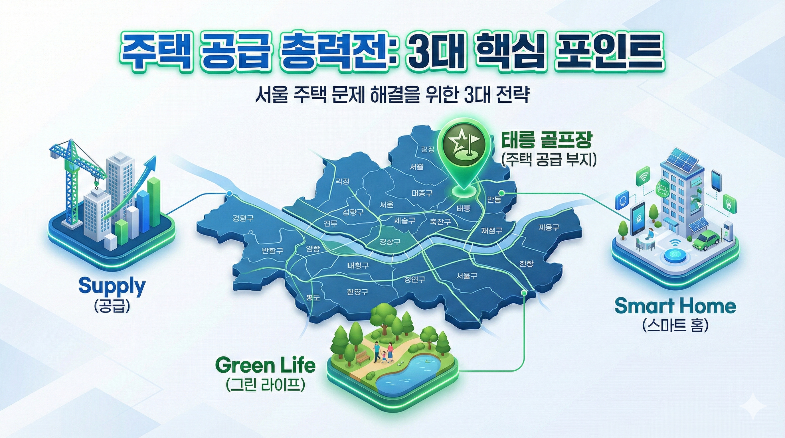 ▶ 심리적 안정 : "서울에도 아직 공급할 땅이 있다"는 신호를 줌으로써 패닉 바잉을 억제하는 효과가 있습니다.